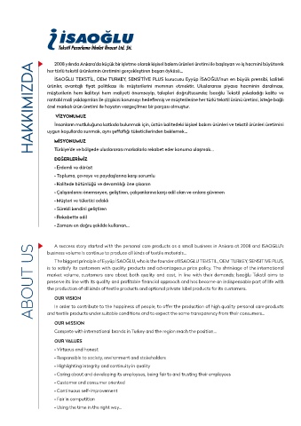 rantabl mali yaklaşımları ile çizgisini korumayı hedeflemiş ve müşterilerine her türlü tekstil ürünü üretimi, isteğe bağlı